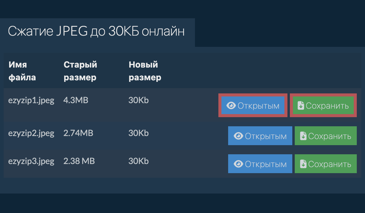 Пошаговая инструкция, показывающая, как сжать JPEG до 30КБ онлайн с помощью ezyZip.