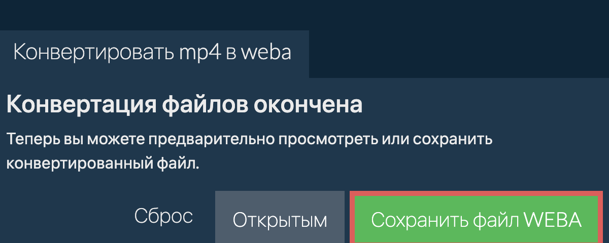 Нажмите "Выбрать файл MP4 для конвертации", чтобы открыть выбор файла - Нажмите "Конвертировать в WEBA". Начнется процесс конвертации, который займет некоторое время.