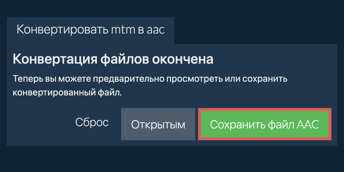 Нажмите "Выбрать файл MTM для конвертации", чтобы открыть выбор файла - Нажмите "Конвертировать в AAC". Начнется процесс конвертации, который займет некоторое время.