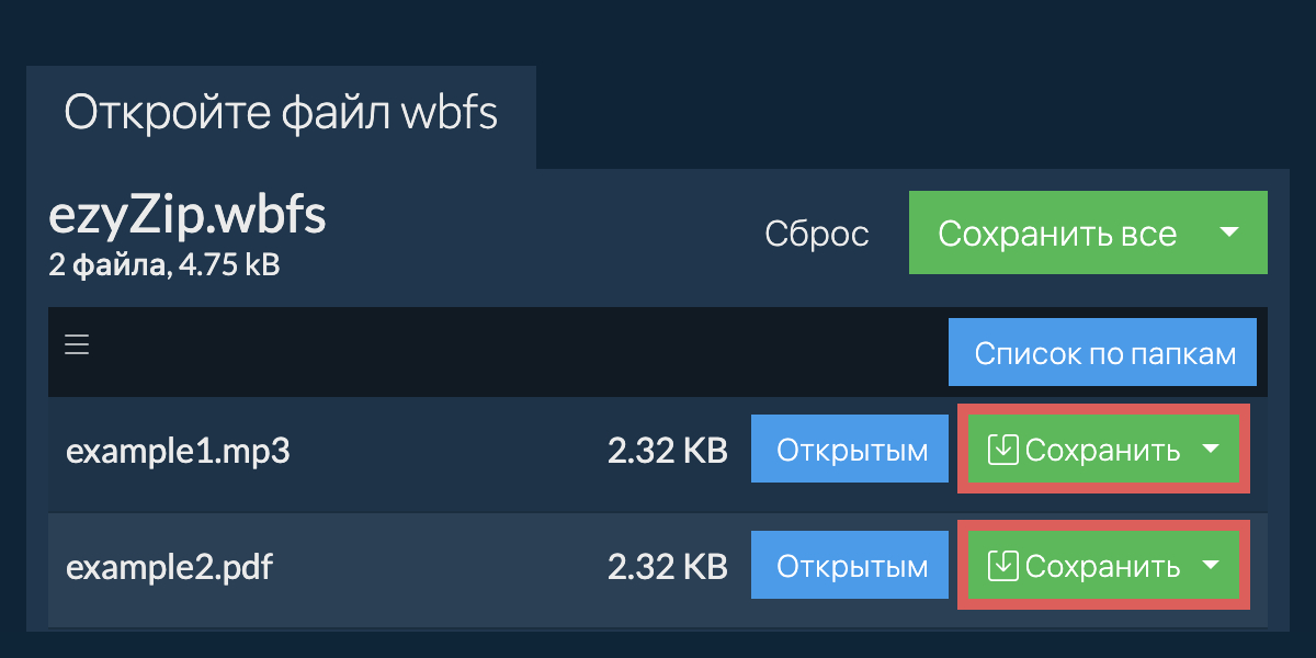 Файлы будут сохранены в папке /Apps/ezyZip.