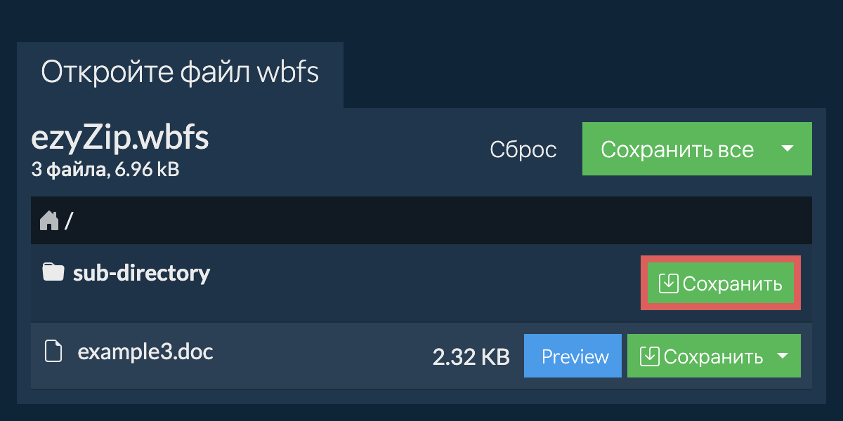 - Нажмите кнопку "Сохранить" в строке подпапки, которую вы хотите извлечь