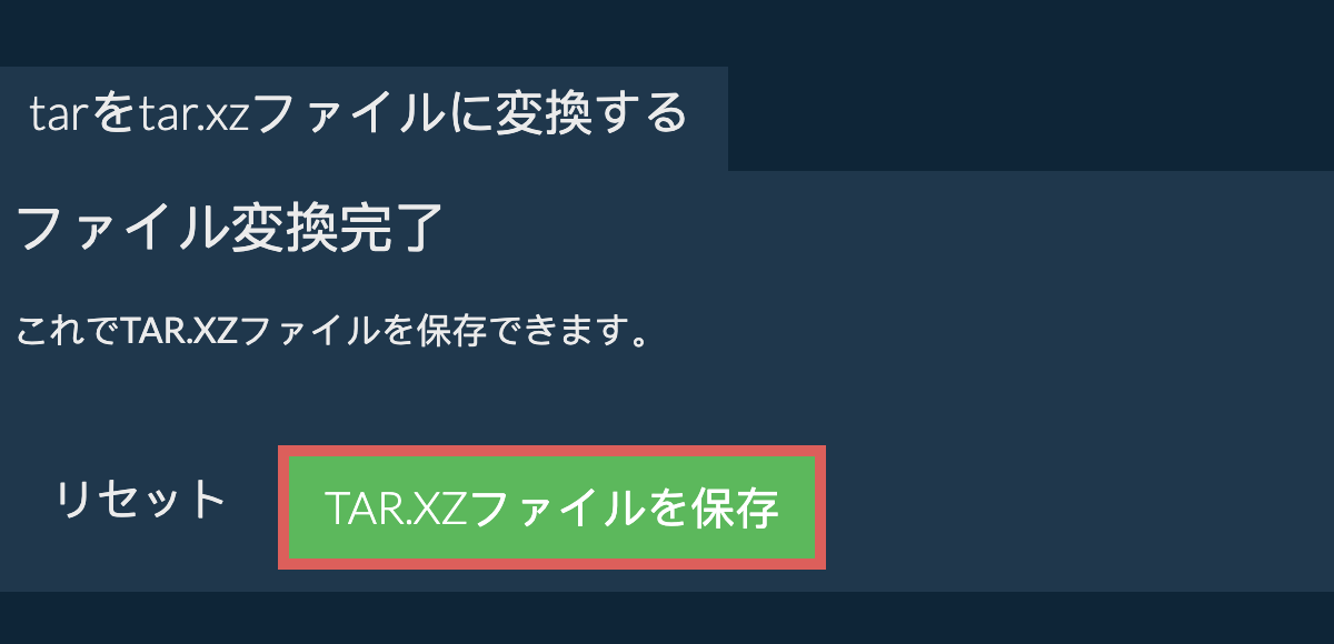 - [TAR.XZファイルの保存]をクリックして、変換されたTAR.XZファイルをローカルドライブに保存します。