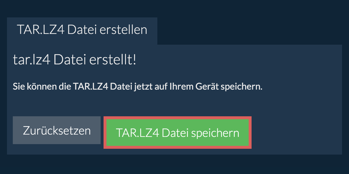 - Klicken Sie auf "TAR.LZ4 Datei erstellen". Die Dateien werden komprimiert.