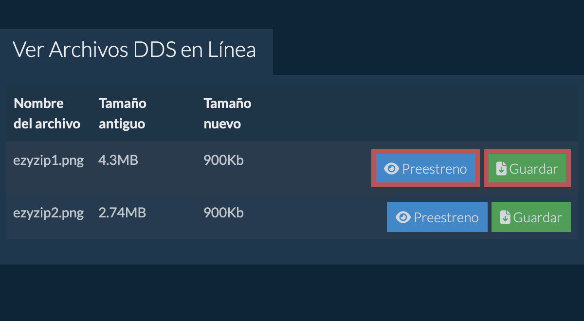 ezyZip proporciona herramientas para gestionar diferentes tipos de archivos. Esta utilidad específica permite la visualización en línea de archivos DDS, con la opción de descargar las imágenes como archivos PNG de alta calidad en tu computadora.