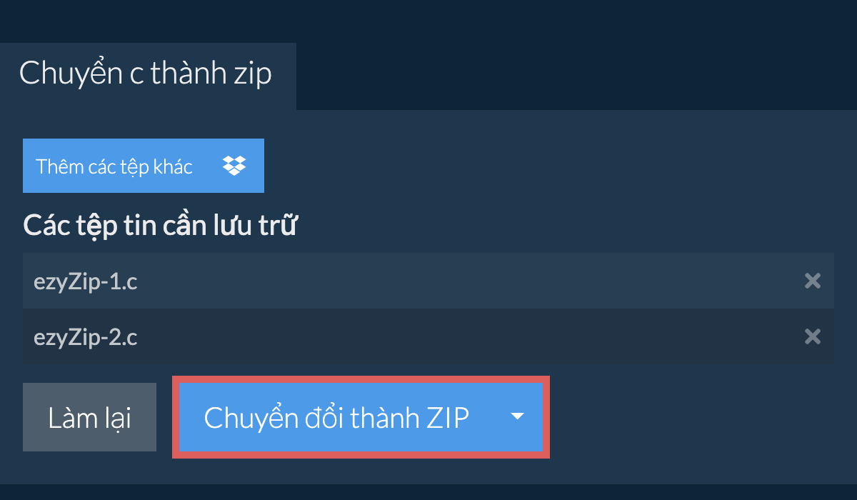 ezyZip là tiện ích lưu trữ miễn phí để chuyển đổi tệp C sang ZIP trực tuyến. Nó hỗ trợ vô số định dạng tệp lưu trữ khác.