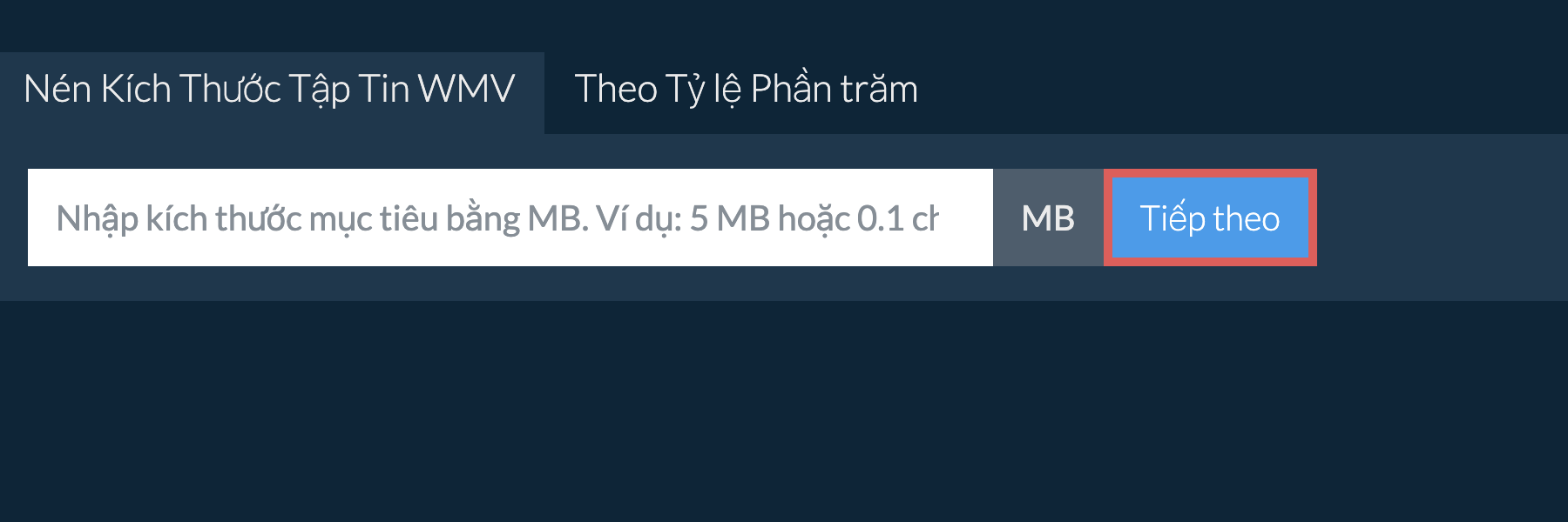 - Để giảm WMV xuống dưới một kích thước nhất định, nhập kích thước tệp mong muốn của bạn bằng MB. Ví dụ: 5 MB hoặc 0.5 cho 500KB và nhấp vào "Tiếp theo".