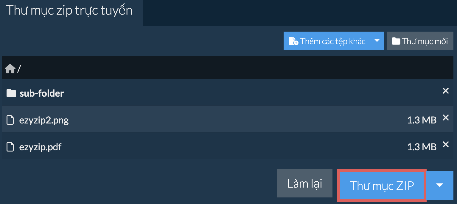 Dưới đây là hướng dẫn từng bước để nén một thư mục trực tuyến bằng ezyZip.