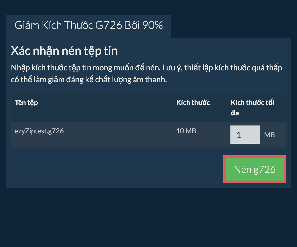 ezyZip là một công cụ giảm kích thước tệp từ g726 sang 90% miễn phí trực tuyến chạy trên trình duyệt của bạn. Không cần cài đặt thêm phần mềm nén. Nó hỗ trợ nhiều phương thức nén phương tiện khác nữa.