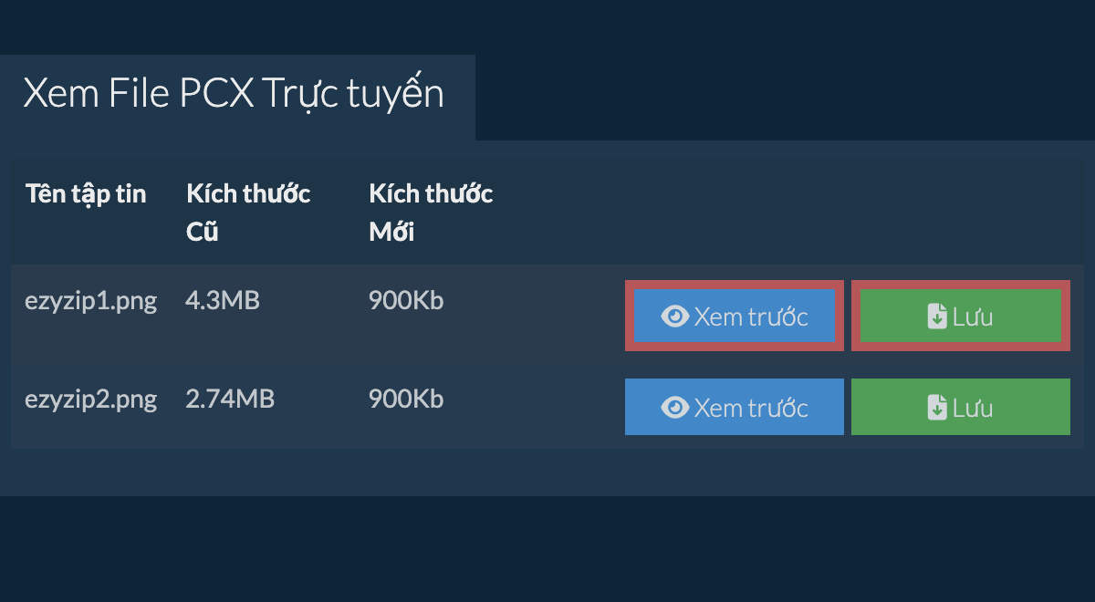 ezyZip cung cấp các công cụ để quản lý các loại file khác nhau. Tiện ích cụ thể này cho phép xem file PCX trực tuyến, với tùy chọn tải ảnh về máy tính dưới dạng tệp PNG chất lượng cao.